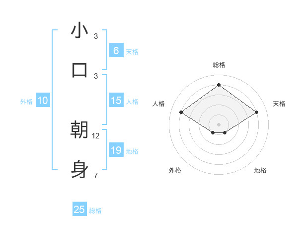 小口 朝身さんの総格は25画の4点!