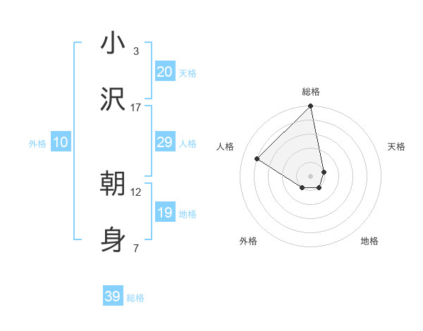 小沢 朝身さんの総格は39画の5点!