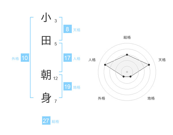 小田 朝身さんの総格は27画の3点!