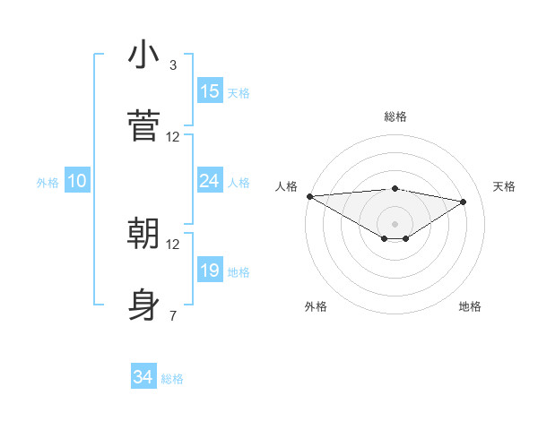 小菅 朝身さんの総格は34画の2点!