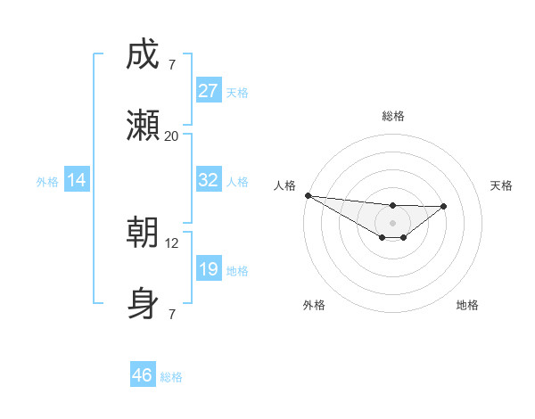 成瀬 朝身さんの総格は46画の1点!