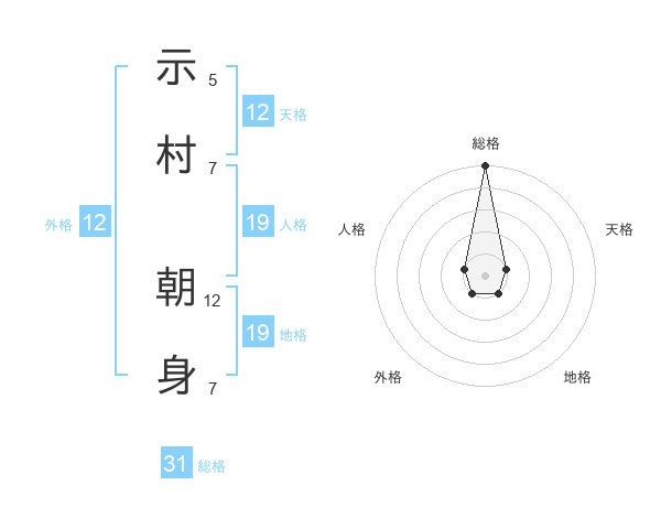 示村 朝身さんの総格は31画の5点!