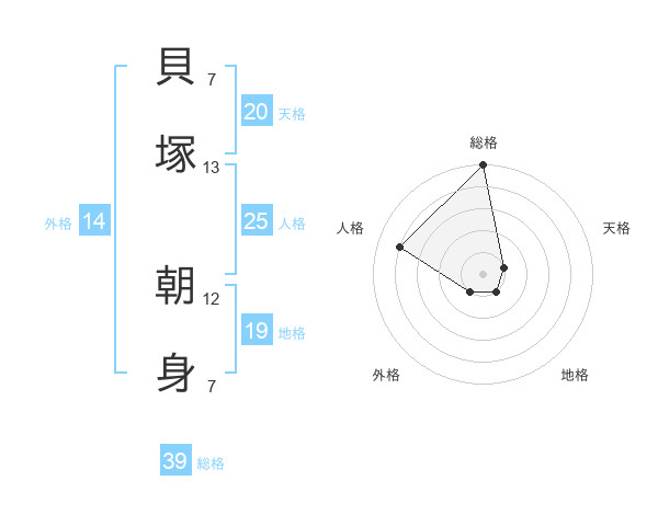 貝塚 朝身さんを姓名の画数から五運を鑑定