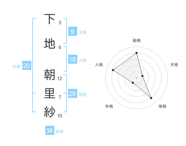 下地 朝里紗さんを姓名の画数から五運を鑑定