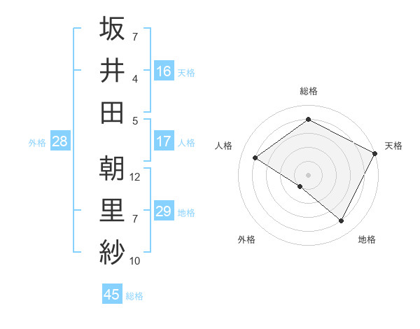 坂井田 朝里紗さんを姓名の画数から五運を鑑定