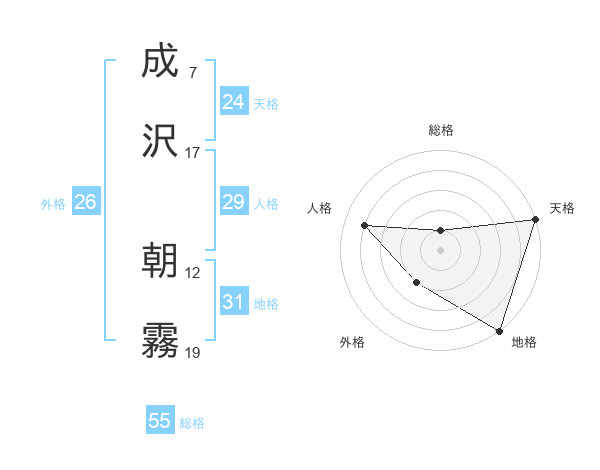 成沢 朝霧さんの天格は24画の5点!