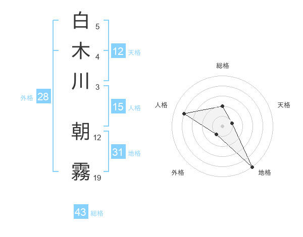白木川 朝霧さんを姓名の画数から五運を鑑定