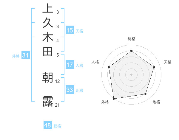 上久木田 朝露さんを姓名の画数から五運を鑑定