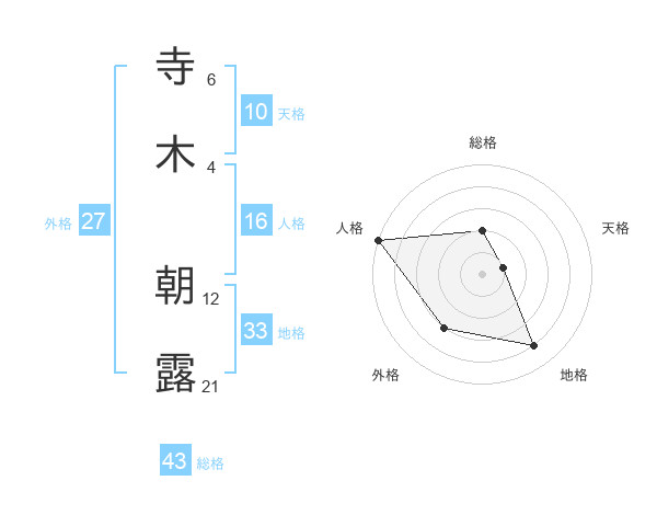 寺木 朝露さんの総格は43画の2点!