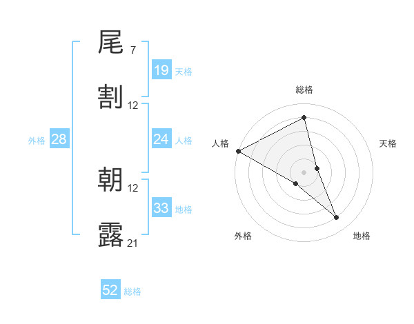 尾割 朝露さんを姓名の画数から五運を鑑定