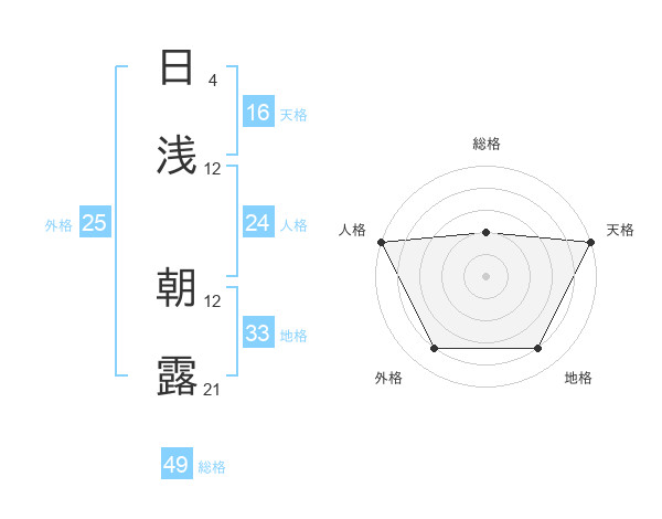 日浅 朝露さんの天格は16画の5点!