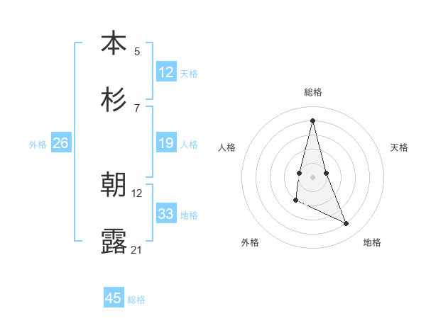 本杉 朝露さんの総格は45画の4点!