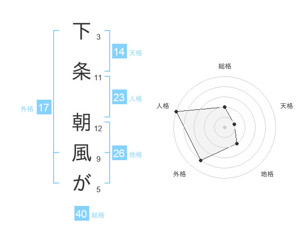 下条 朝風がさんの外格は17画の4点!