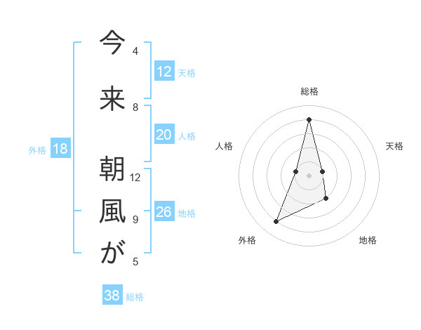 今来 朝風がさんの総格は38画の4点!