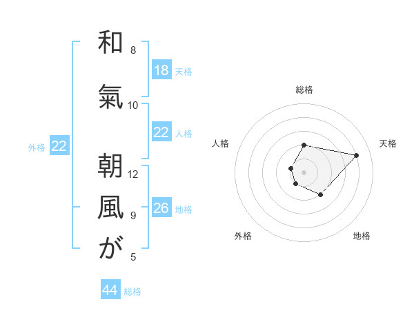 和氣 朝風がさんの天格は18画の4点!