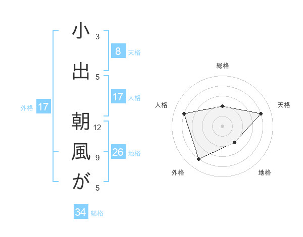 小出 朝風がさんの総格は34画の2点!