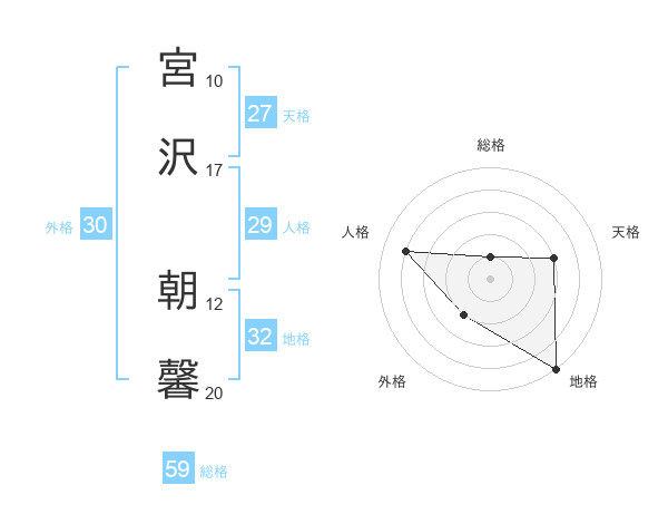 宮沢 朝馨さんを姓名の画数から五運を鑑定