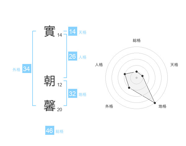 實 朝馨さんの外格は34画の2点!