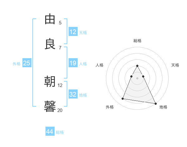 由良 朝馨さんを姓名の画数から五運を鑑定