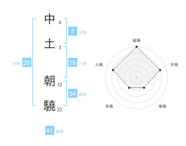 中土 朝驍さんを姓名の画数から五運を鑑定