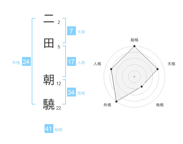 二田 朝驍さんを姓名の画数から五運を鑑定