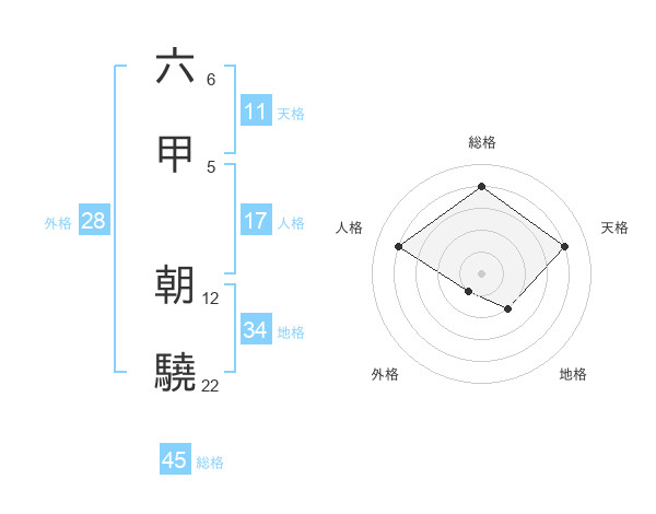 六甲 朝驍さんの総格は45画の4点!