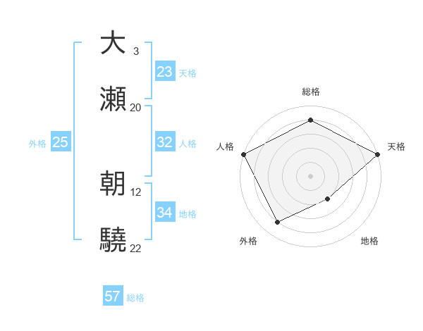 大瀬 朝驍さんの天格は23画の5点!
