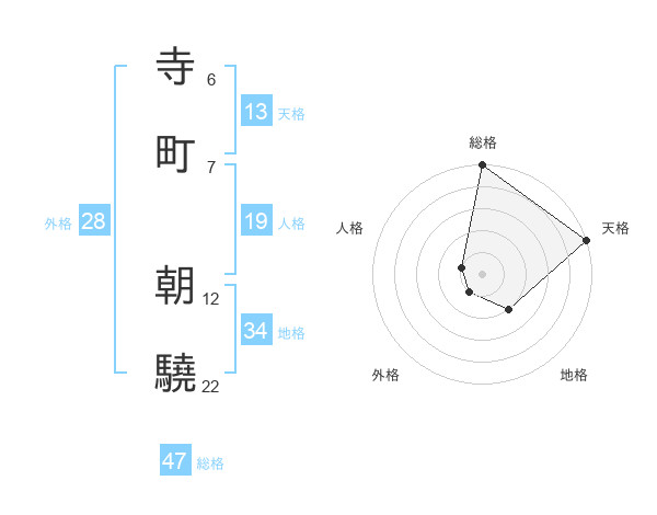 寺町 朝驍さんの総格は47画の5点!