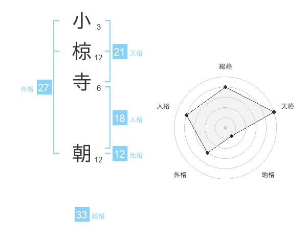 小椋寺 朝さんを姓名の画数から五運を鑑定