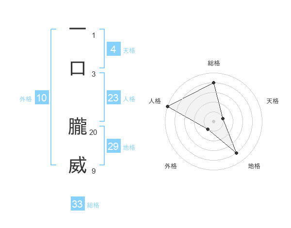 一口 朧威さんの総格は33画の4点!
