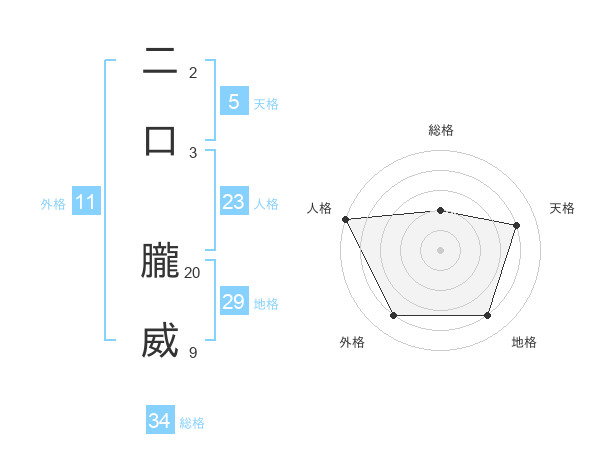 二口 朧威さんの天格は5画の4点!