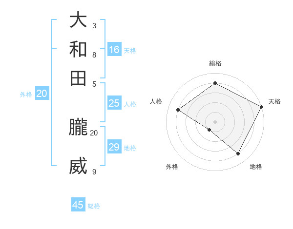 大和田 朧威さんを姓名の画数から五運を鑑定