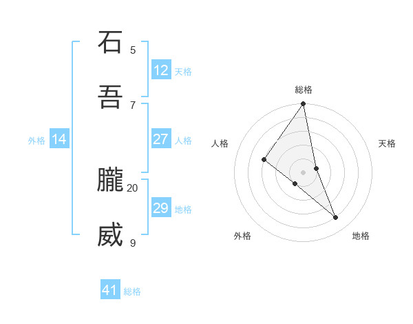 石吾 朧威さんを姓名の画数から五運を鑑定