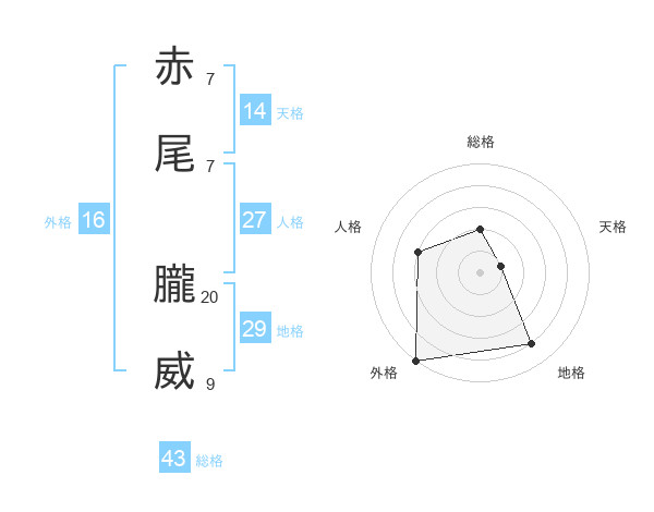 赤尾 朧威さんを姓名の画数から五運を鑑定
