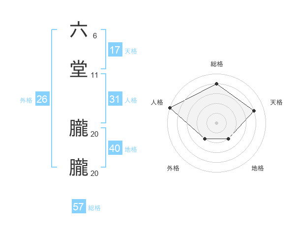 六堂 朧朧さんの総格は57画の4点!