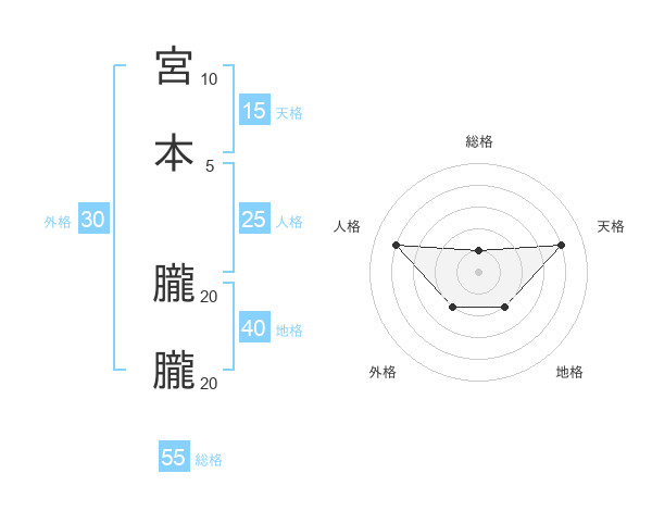 宮本 朧朧さんの天格は15画の4点!