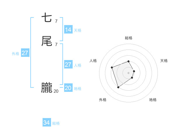 七尾 朧さんの総格は34画の2点!