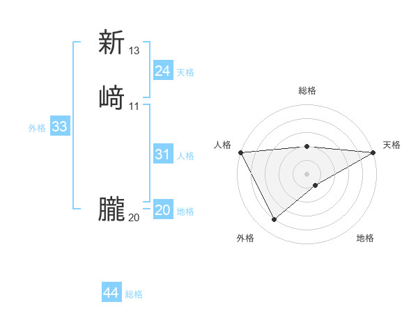 新﨑 朧さんを姓名の画数から五運を鑑定