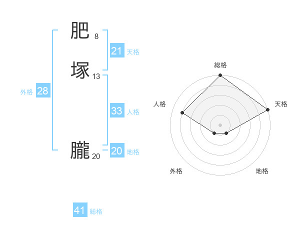 肥塚 朧さんの天格は21画の5点!