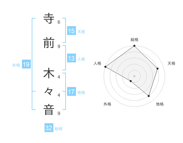寺前 木々音さんを姓名の画数から五運を鑑定
