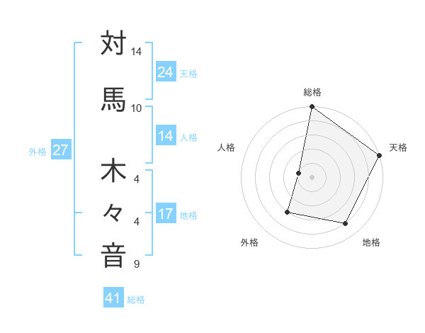 対馬 木々音さんを姓名の画数から五運を鑑定
