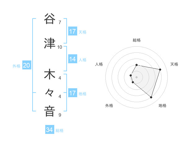 谷津 木々音さんを姓名の画数から五運を鑑定