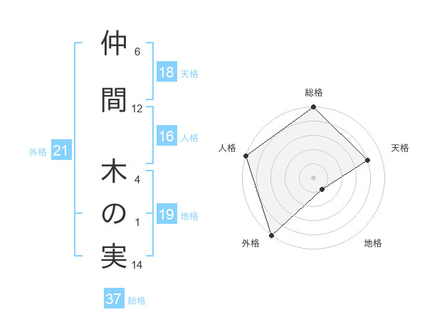 仲間 木の実さんを姓名の画数から五運を鑑定