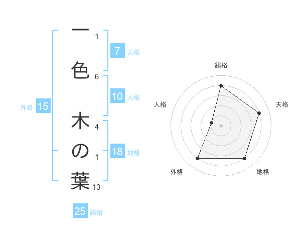 一色 木の葉さんを姓名の画数から五運を鑑定