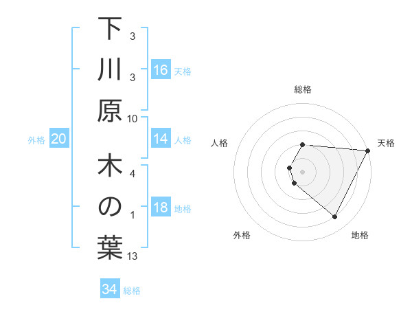 下川原 木の葉さんを姓名の画数から五運を鑑定
