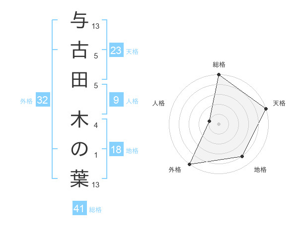 与古田 木の葉さんを姓名の画数から五運を鑑定