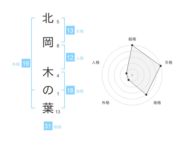北岡 木の葉さんを姓名の画数から五運を鑑定