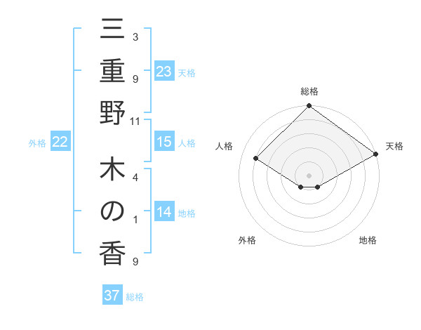 三重野 木の香さんを姓名の画数から五運を鑑定