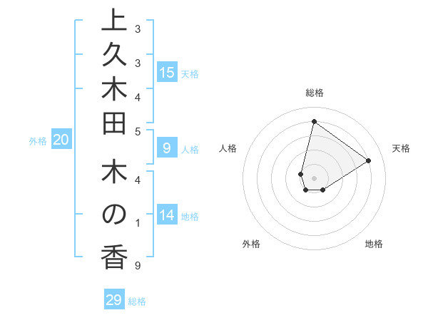 上久木田 木の香さんの総格は29画の4点