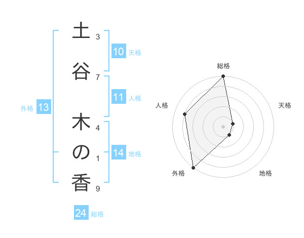 土谷 木の香さんの総格は24画の5点!